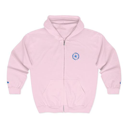 Light Blue Directionally Challenged Full-Zip Hooded Sweatshirt (with subtle hints)