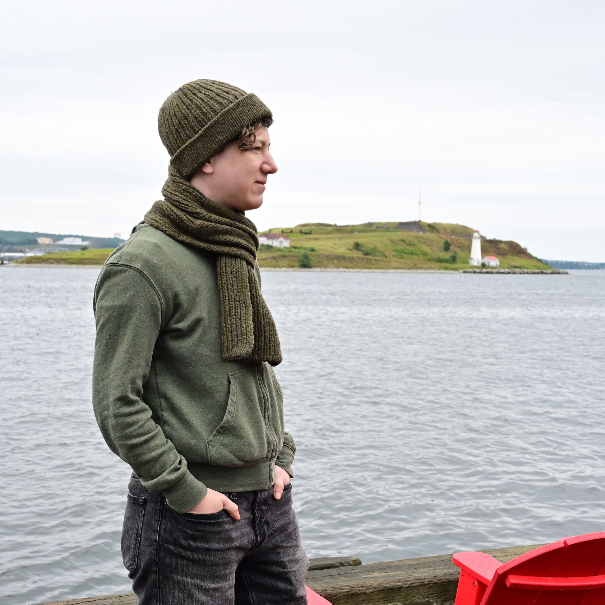This pattern pairs with the Glenbrook Pull-Through Scarf for a matching set.