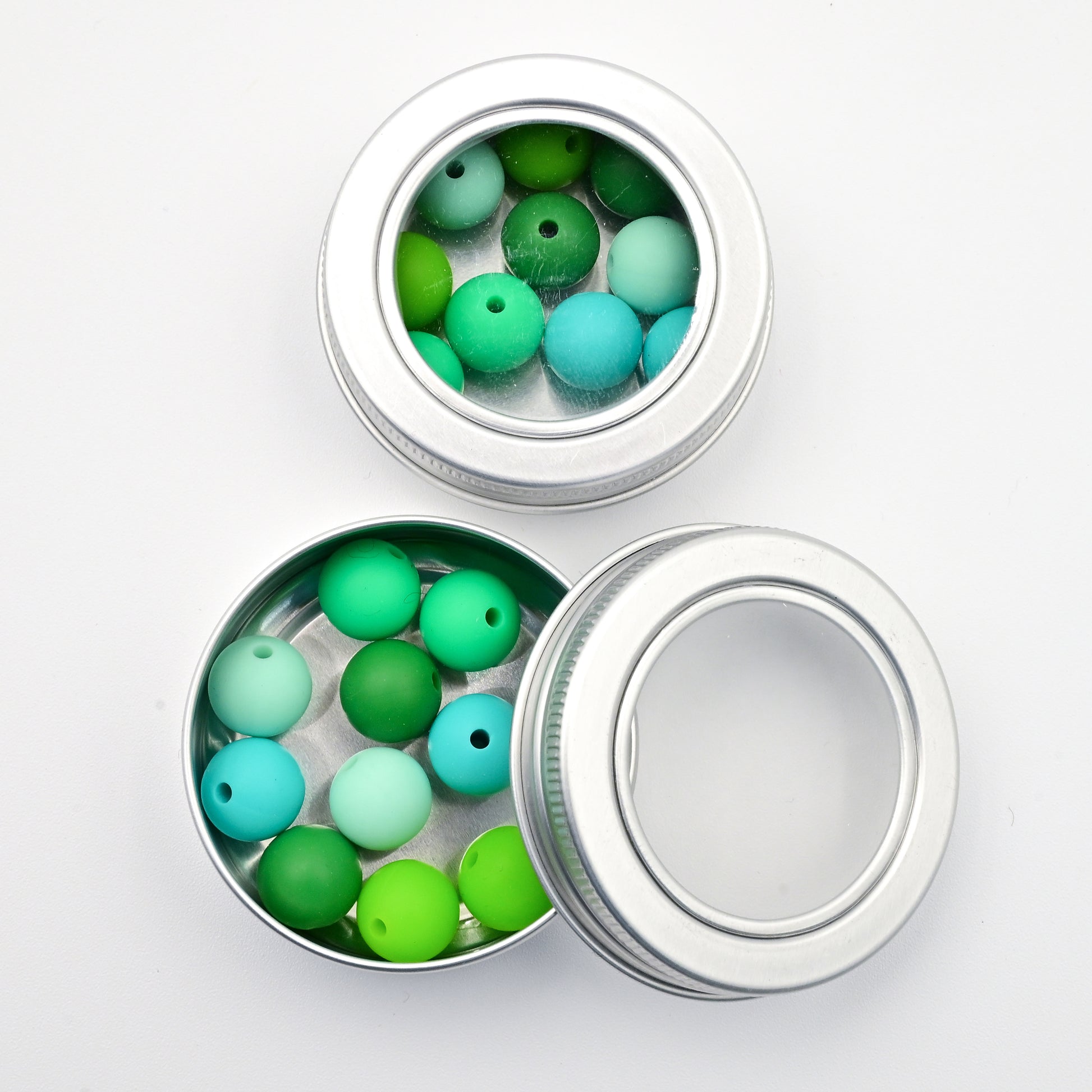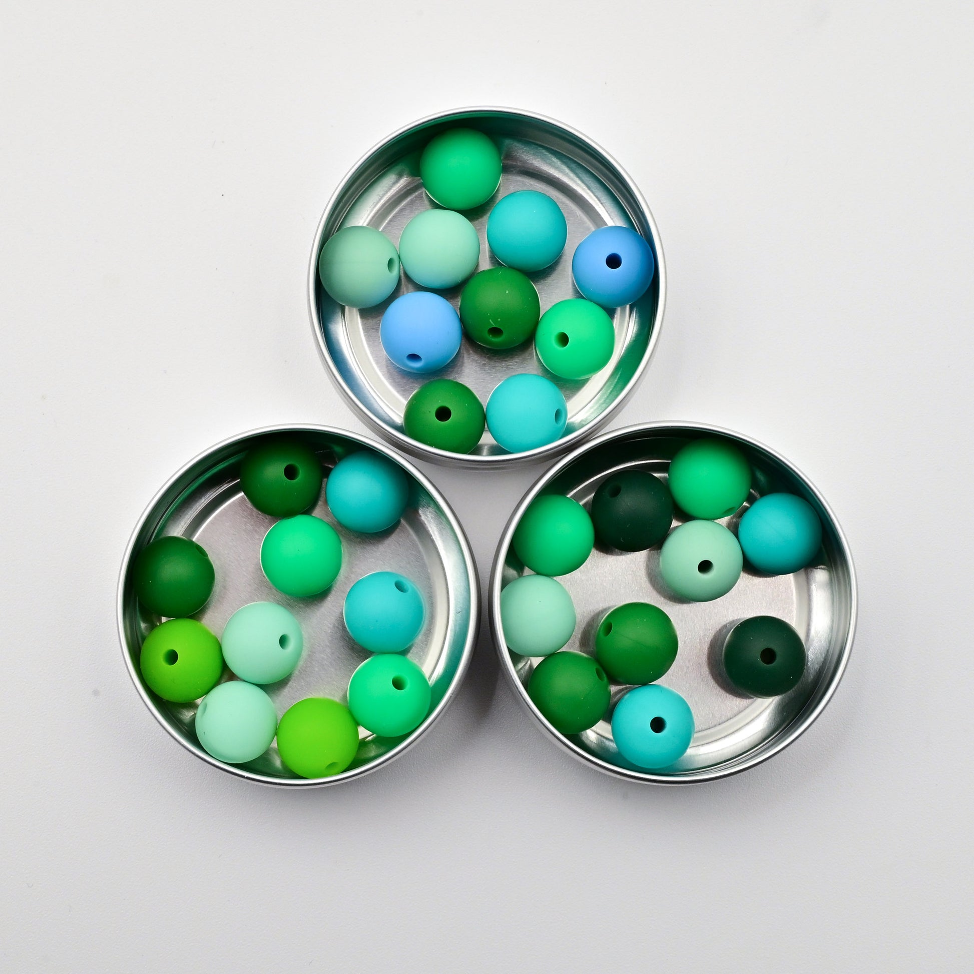 - 5 pairs of 12mm spherical stoppers in Kelly, Teal, Hunter, Mint and either Sky Blue, Forest or Grass Green.