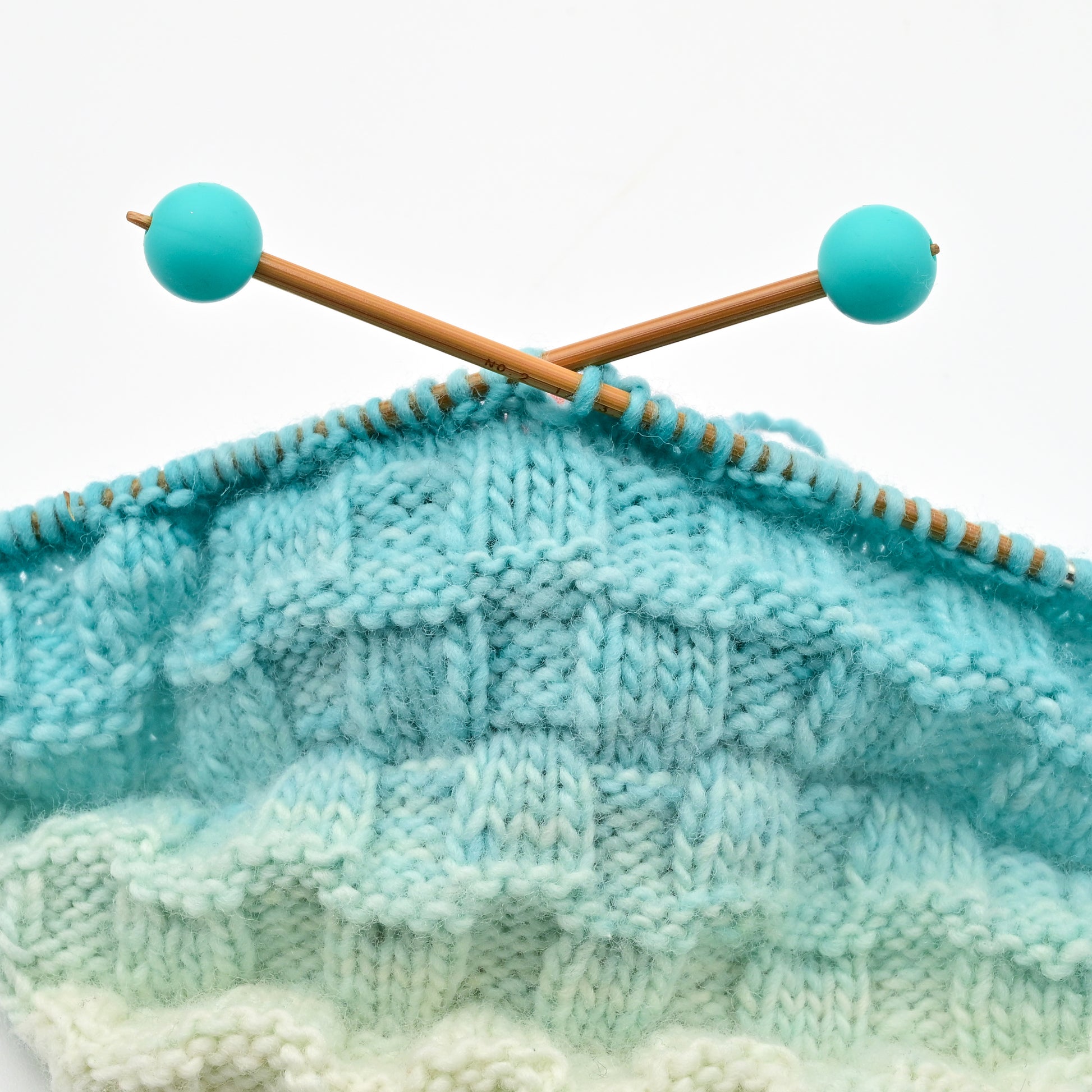 Note: I find that the larger stoppers work best with smaller needle sizes and small stoppers stretch more easily to fit needles with a larger diameter. The 12mm spheres are a middle of the road option for general use. Check out the other available sizes and shapes for more options.