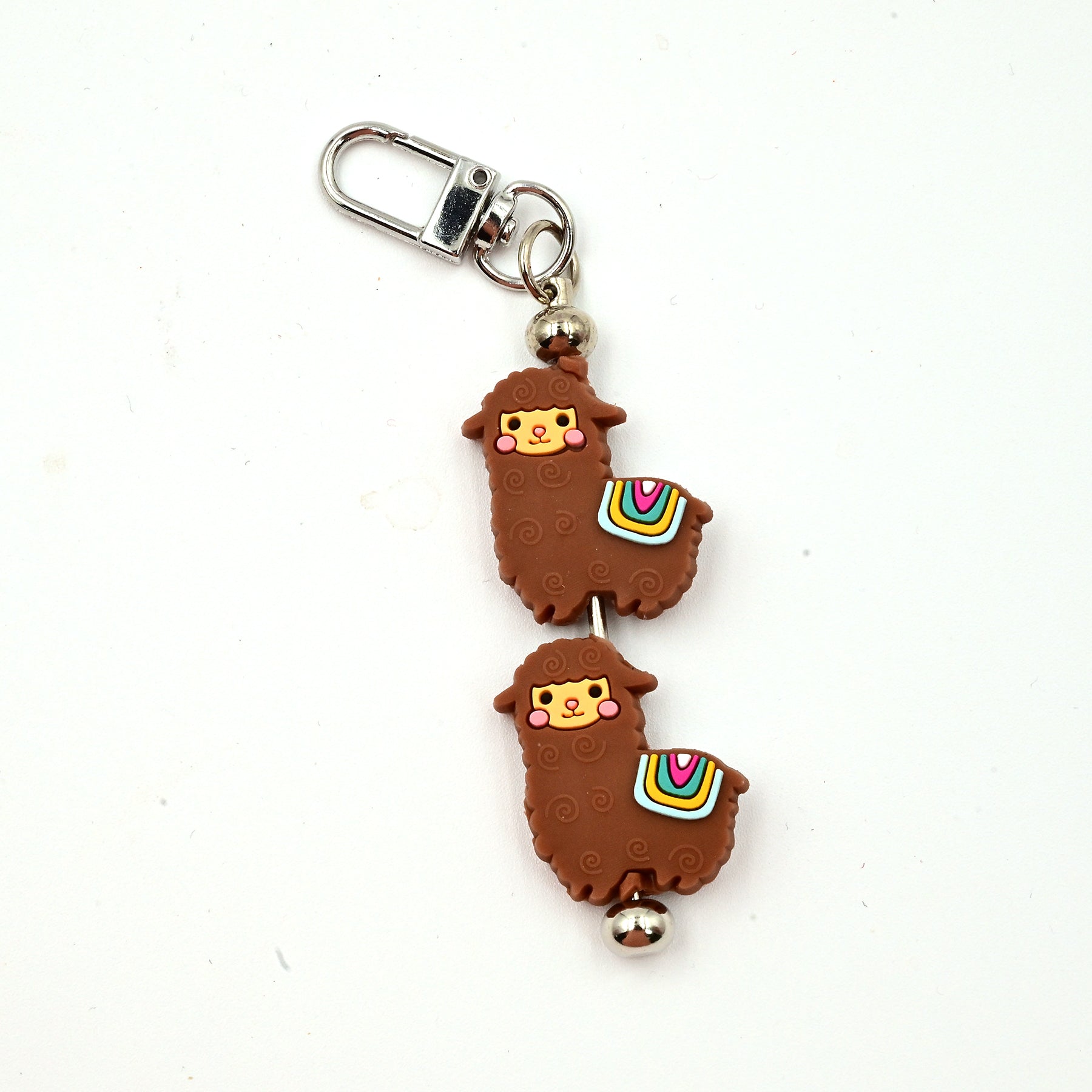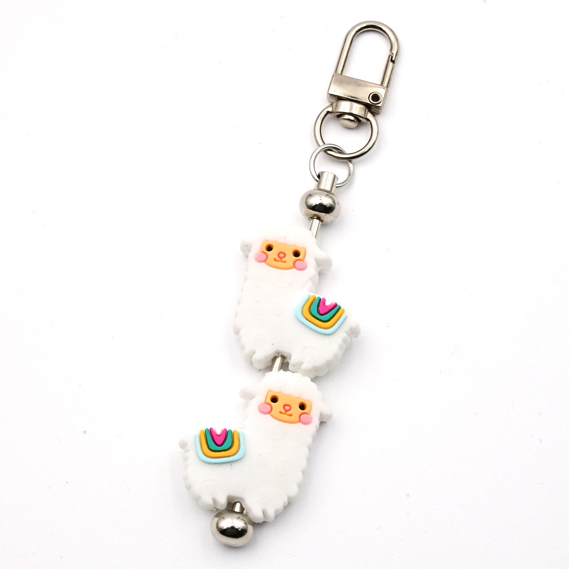 - 1 pair of 30mm white alpaca shaped stoppers wearing rainbow blankets.