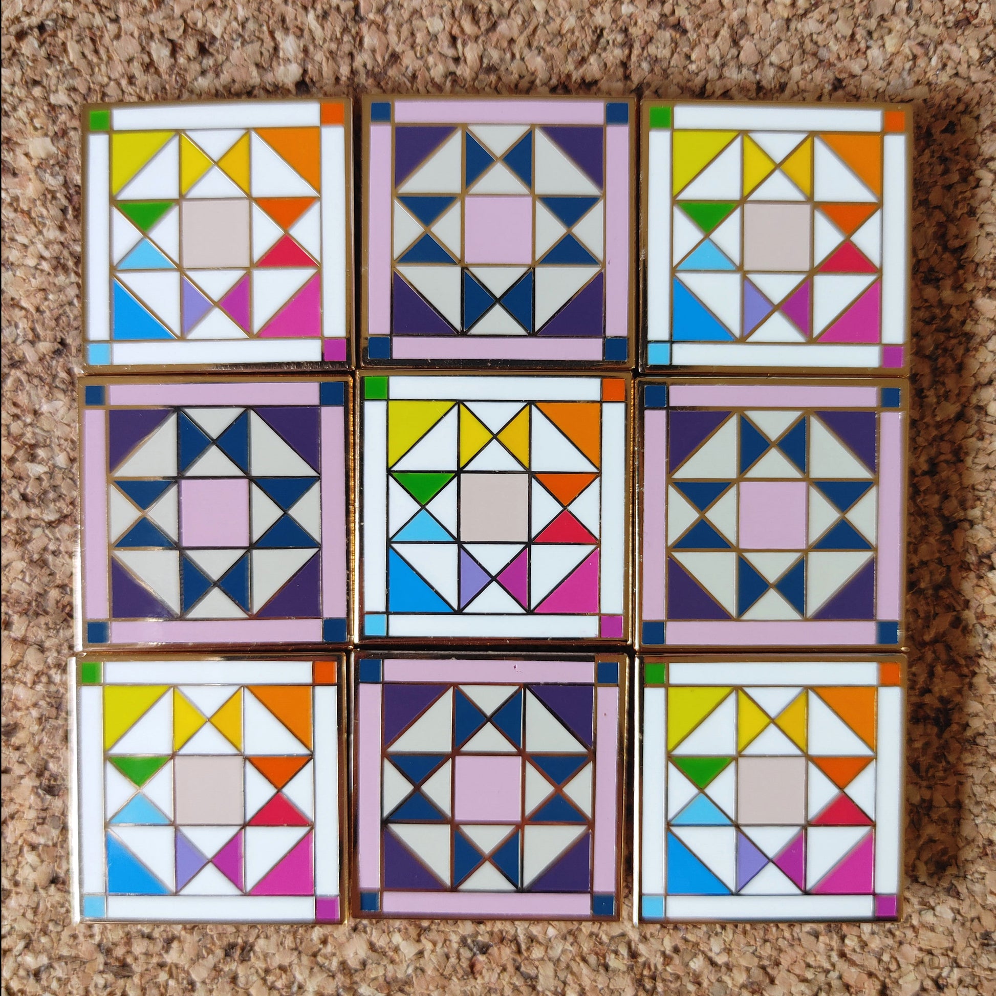 Based on a traditional Kansas Star quilt block, these pins are the perfect flare for showing off your love of quilting.