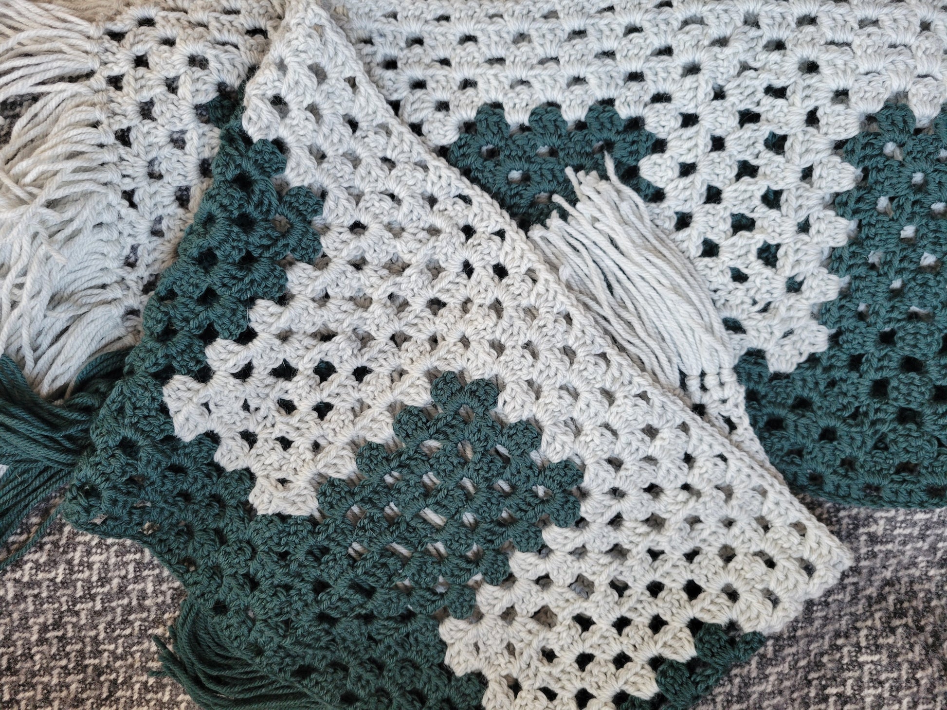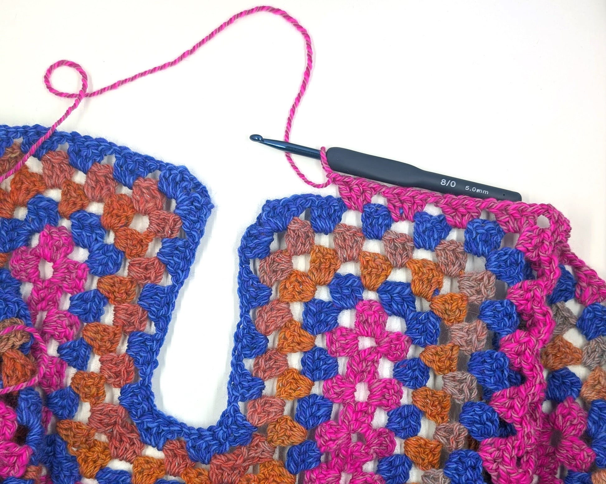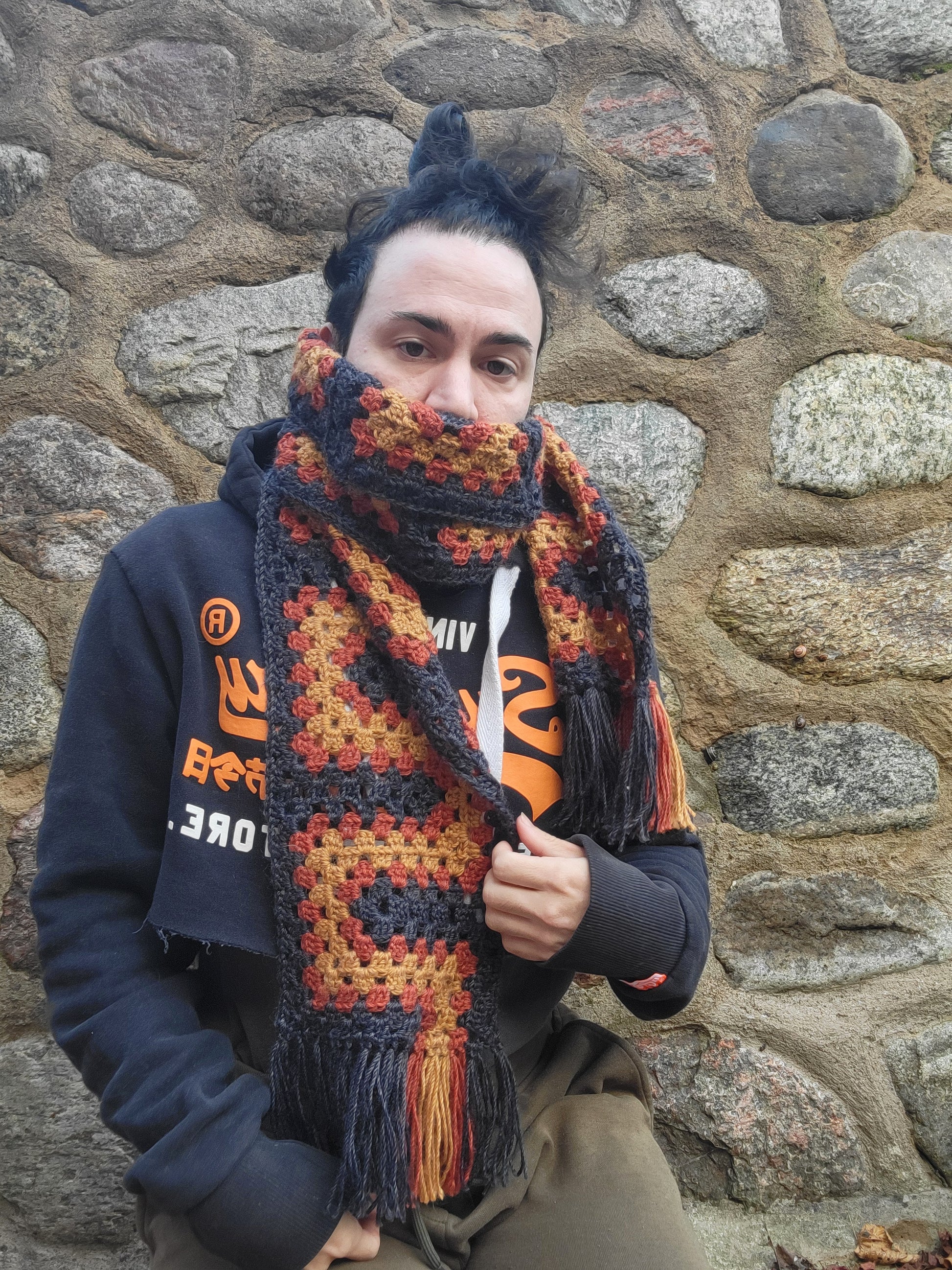 The Stacktangle Scarf is a new crochet pattern from Patrick Stewart and Xandy Peters. This scarf is worked horizontally in a granny stitch pattern. The inclusion of stacked increases and decreases turns simple stripes into complex looking colorwork. Pat and I based this pattern off of our earlier Stacktangle Blanket collaboration. The charted and written instructions include 3 different lengths and it's easy to make adjustments to the stitch count.
