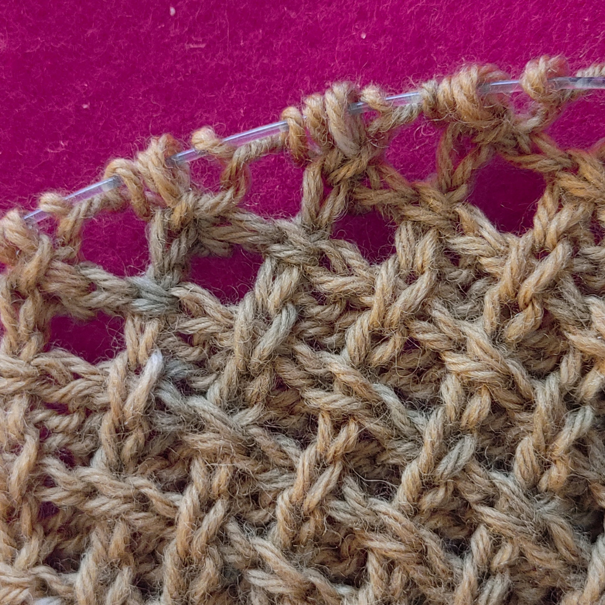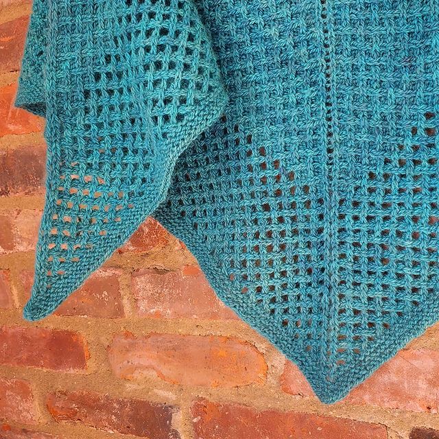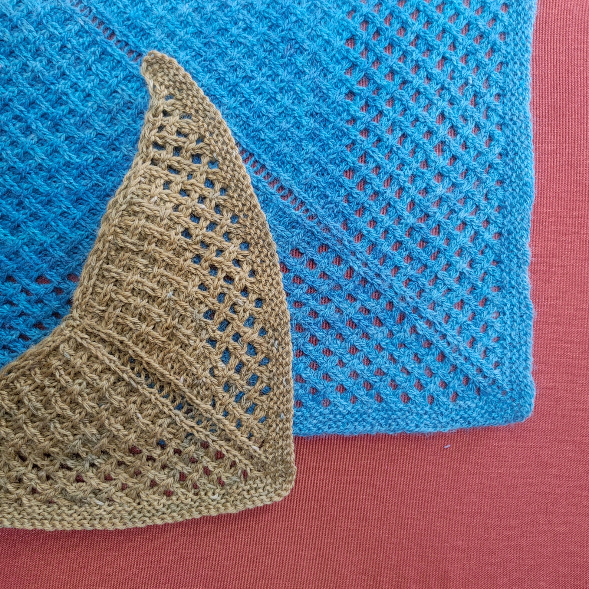 Changing the size of the shawl - The Waffle and Lattice sections may be repeated as many times as you like to get the size you want. In the sample gauge, every 4 rows changes the width by 2.5” (6.cm). For the best results, weigh your yarn before you cast on. You can keep track if how much you have left and measure how many grams you will need to do another 4 row repeat. A 4th skein is necessary if you plan to add more than 5” (12 cm) of width.