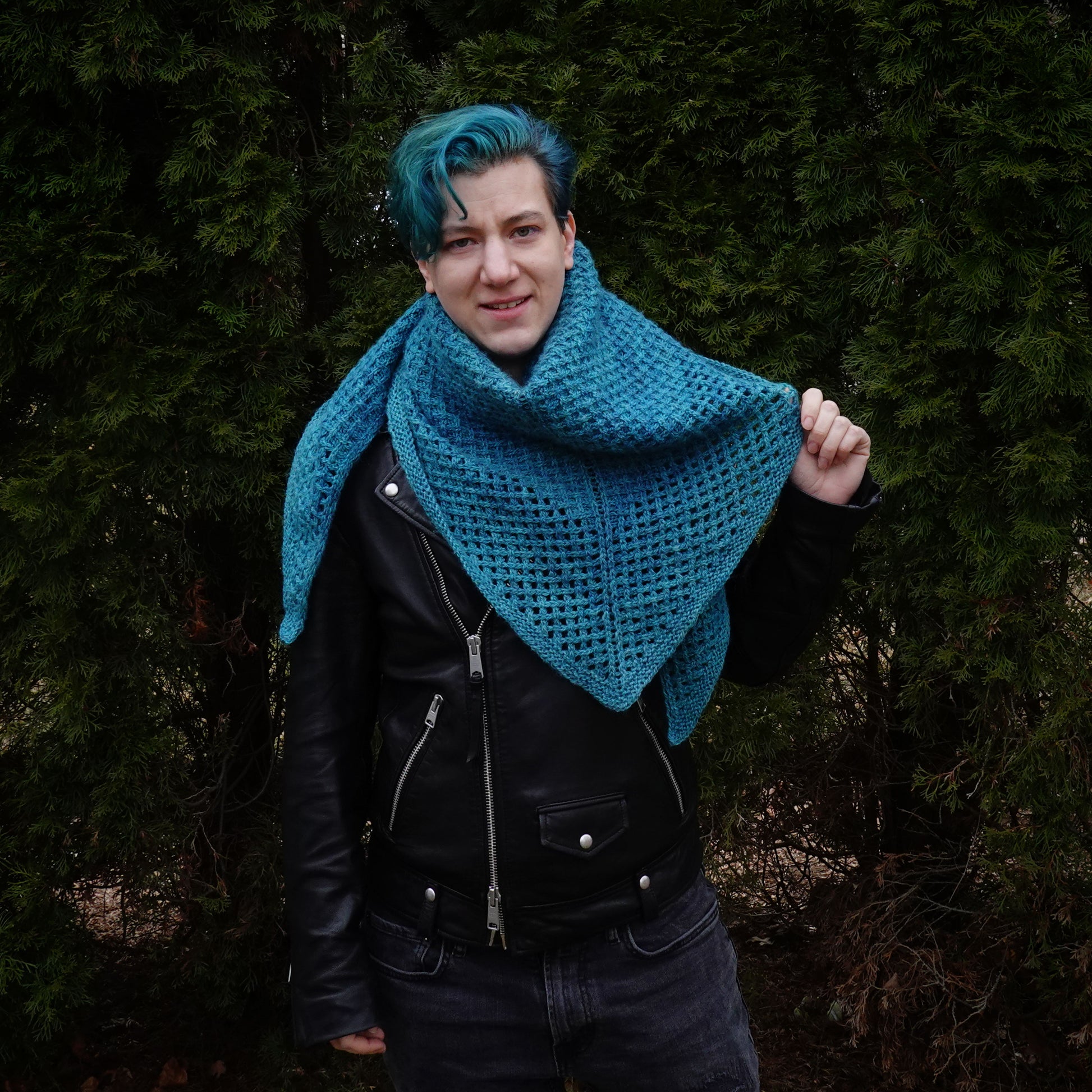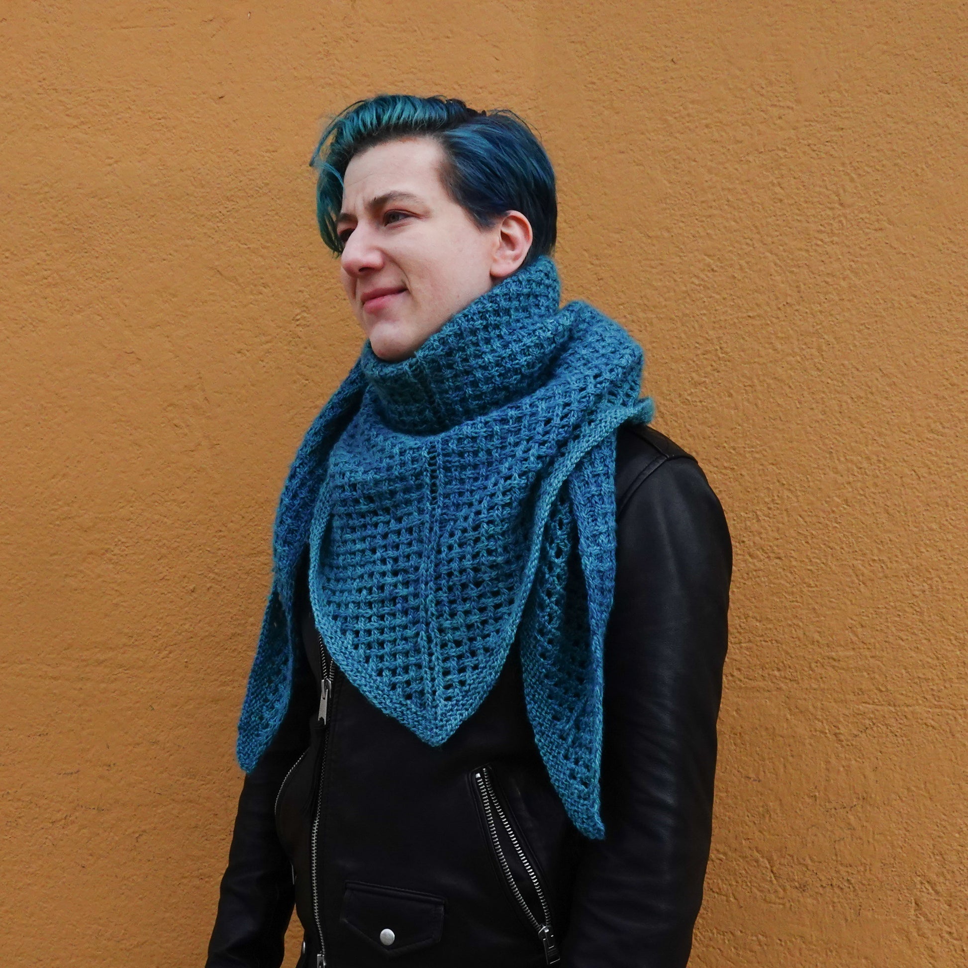 The Stroopwafel Shawl has a basket weave stitch that reminds me of the Dutch cookie of the same name. The center of the shawl is knit in a woven cabled motif. At the edge of the triangle, the stitch pattern transitions seamlessly into a lacy lalttice. The cables create an extra warm, spongy fabric that is sure to keep you warm.