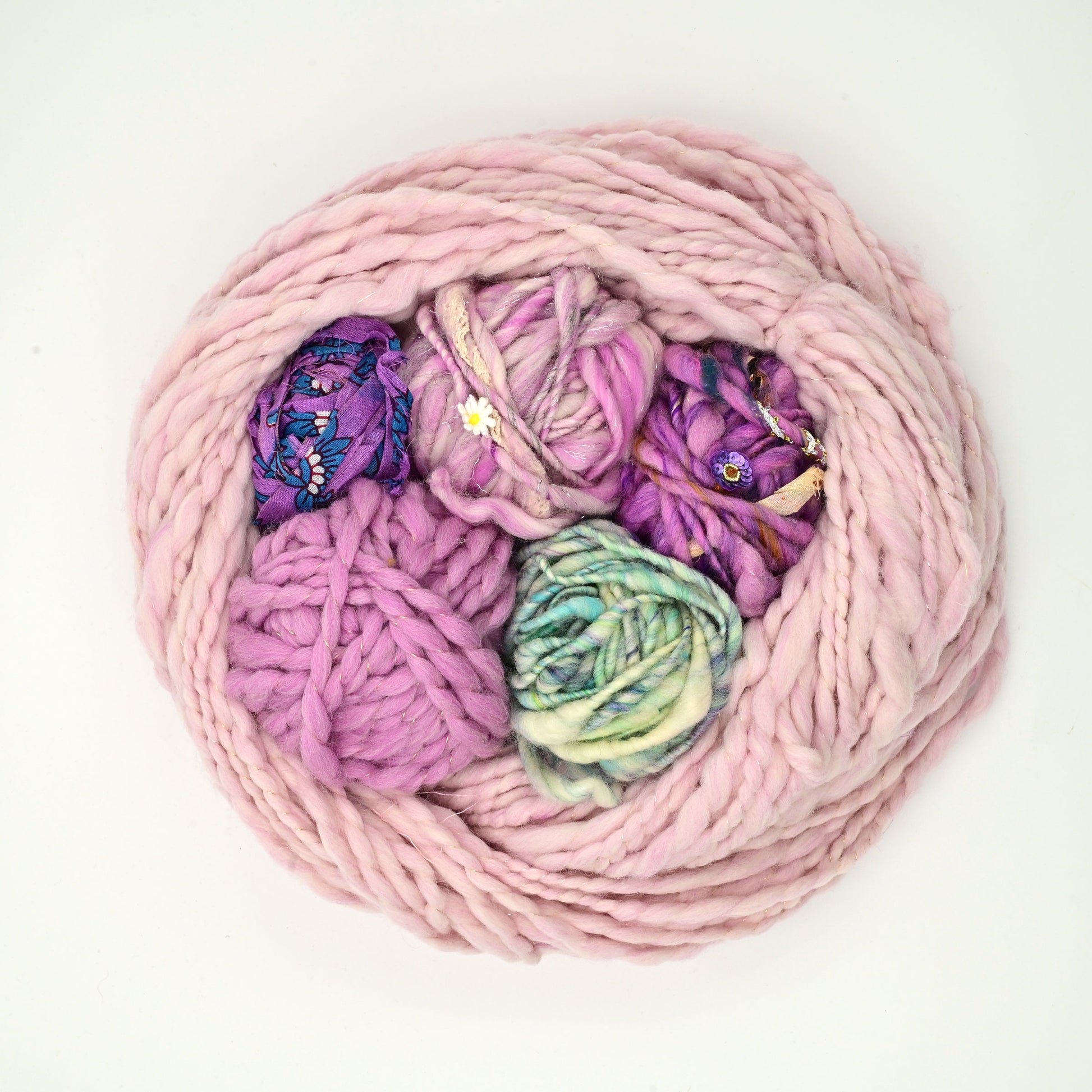 - Purple - Lavender Dust Spun Cloud alternating with Violet ForeverMini Skein Sampler Kit (Cosmos Purple Daisy Chain, Iris Wildflower, Chasing Rainbows Cast Away, Interplanetary Purple Dreamland, Orchid Spun Cloud).